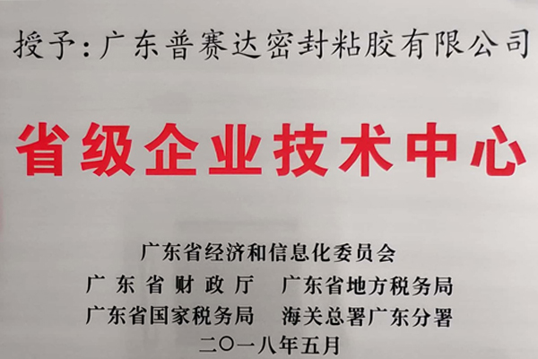 喜讯! 广东普赛达密封粘胶有限公司荣获“省级企业技术中心”。
