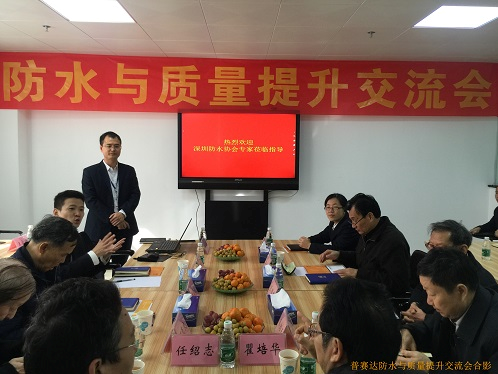 2016年1月11日由会长瞿培华教授带队,深圳市防水(专业)专家委员会组织部分专家委员走访调研了广东普赛达密封粘胶有限公司,并针对“防水与质量提升”进行了专题指导交流。