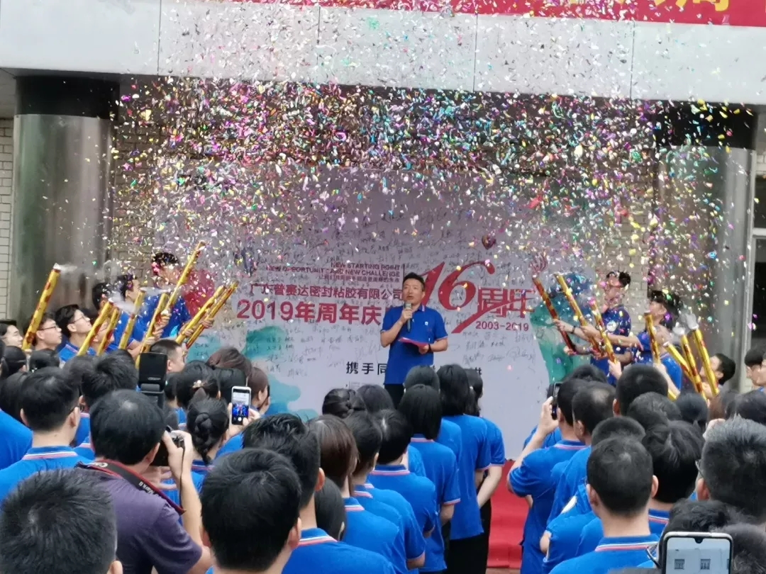 时光荏苒,岁月如梭,转眼间,普赛达成立16年了。2019年8月12日,广东普赛达密封粘胶有限公司的厂区内彩旗飘扬,锣鼓喧天,全体普赛达人齐聚一堂,共贺普赛达16周年庆典。