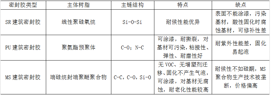表1 常用建筑密封胶结构与优缺点对比
