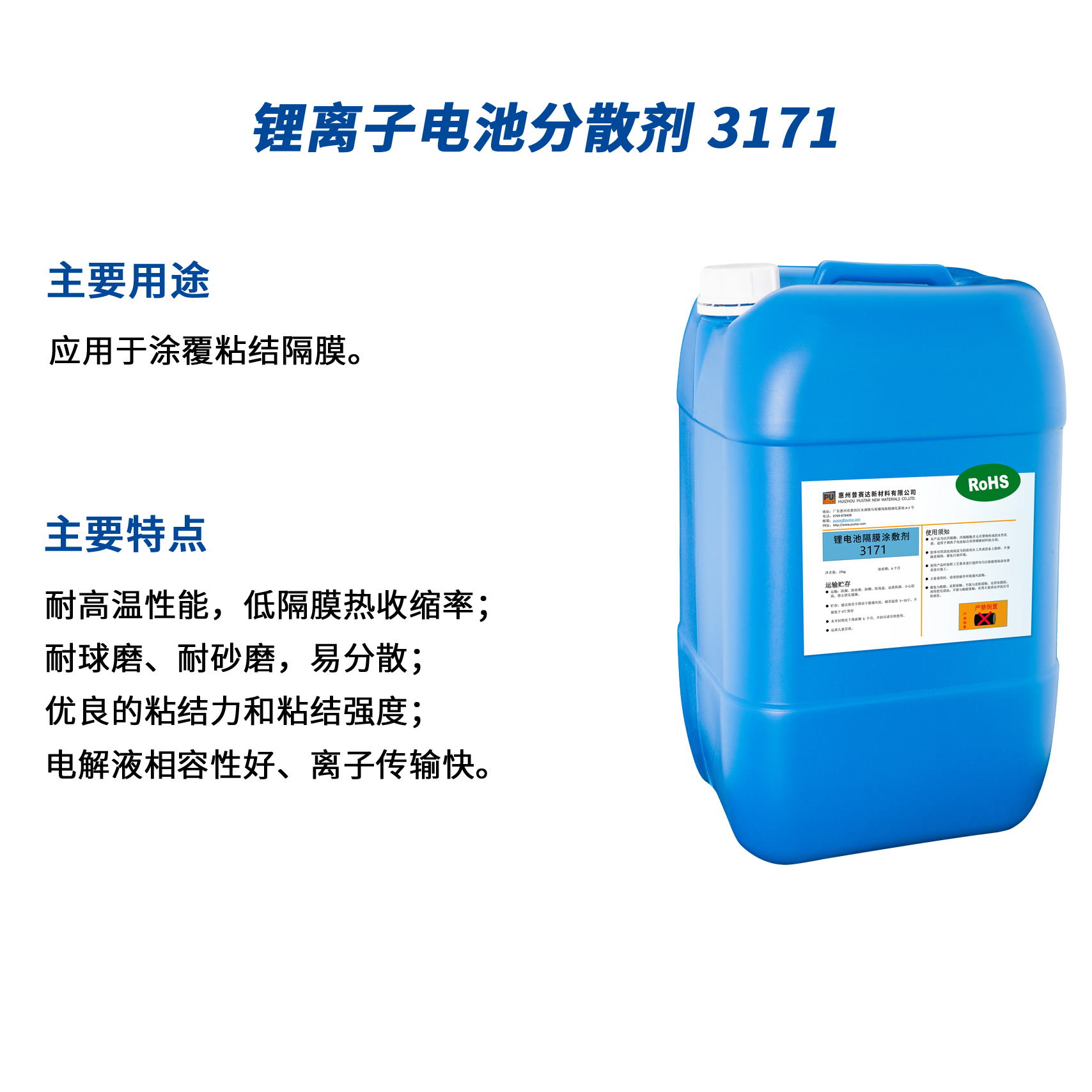 适用于锂电池正极材料的分散,尤其适用于磷酸铁锂,磷酸锰铁锂体系。应用于涂覆粘结隔膜。应用于涂炭铝箔、涂炭铜箔粘合剂等碳材料粘合剂。