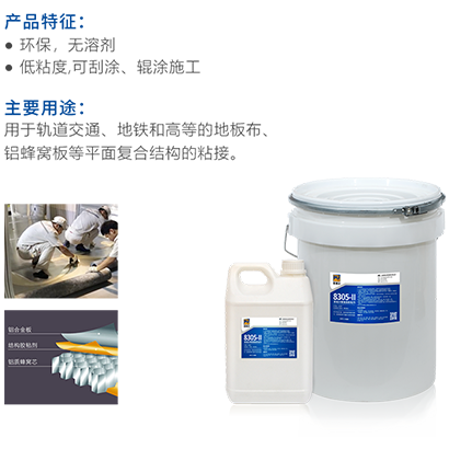 用于轨道交通、地铁和高铁等的地板布、铝蜂窝板等平面复合结构的粘接。