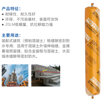 可适用于混凝土外墙伸缩缝的密封防水;综合管廊、地铁、隧道变形缝拼接缝的密封防水;地坪切割缝、屋顶分格缝的密封防水;金属幕墙预留缝密封防水;铝合金窗框与混凝土、水泥墙体缝隙的密封防水。