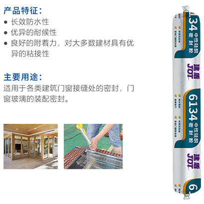 6134为单组分湿气固化密封胶,采用中性硅酮胶作为原料, 对环境无污染,与金属、陶瓷、玻璃、石材等多种基材具有良好的密封粘接性能。